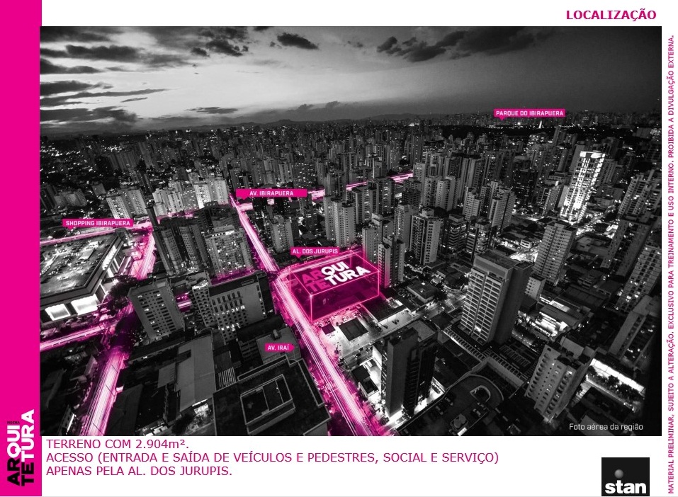 - Arte Arquitetura Moema é o quinto projeto da linha de grife realizado pela Stan. Com excelente localização no bairro de Indianópolis, á 200m do Shopping Ibirapuera, o mesmo fica situado na Alameda do Jurupis, 1267 x Avenida Iraí, possui um terreno amplo com 3 mil m². Estruturado com Apartamentos de 47m², 79m² e 97m², com 1, 2, ou 3 dormitórios. Estamos trabalhando apenas com visitas agendadas pelo telefone (11) 94343-4403 (WhatsApp) ou (11) 94739-9063 com Djavan / David. Venha conhecer nosso projeto.
